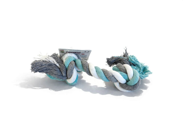 Slidstærkt legetøj i flettet bomuld med to knuder. Velegnet til leg, træk og tyg, samtidig med at det hjælper med at rense tænder og massere tandkødet. Ideel til mindre hunde.