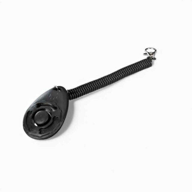 Effektiv EBI klikker til hundetræning og klikkertræning. Kompakt model på 6 cm med praktisk snor og lås, så du nemt kan fastgøre den til hundeline, taske eller jakke.