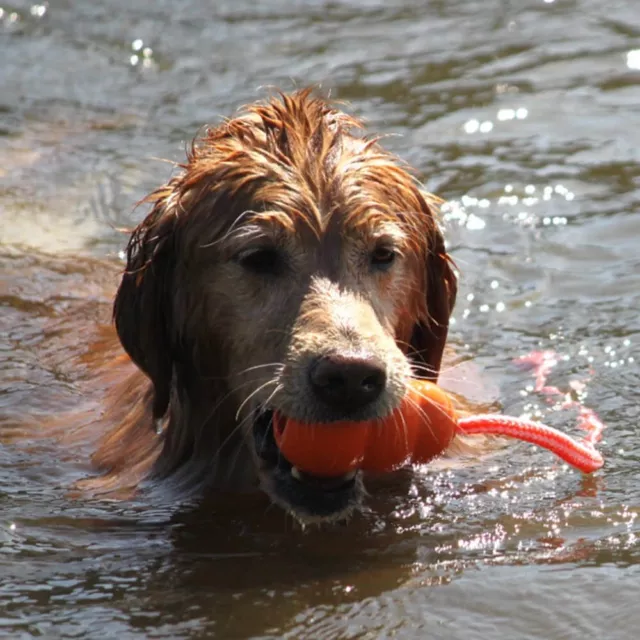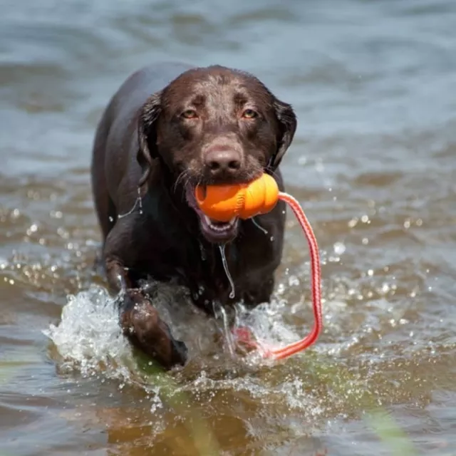 Den lange og robuste nylonsnor gør det let at kaste KONG Aqua langt ud i vandet hvilket giver ekstra fart og spænding i legen. Samtidig gør snoren legetøjet velegnet til leg mellem flere hunde hvor der kan trækkes apporteres og leges sammen både i vand og på land.