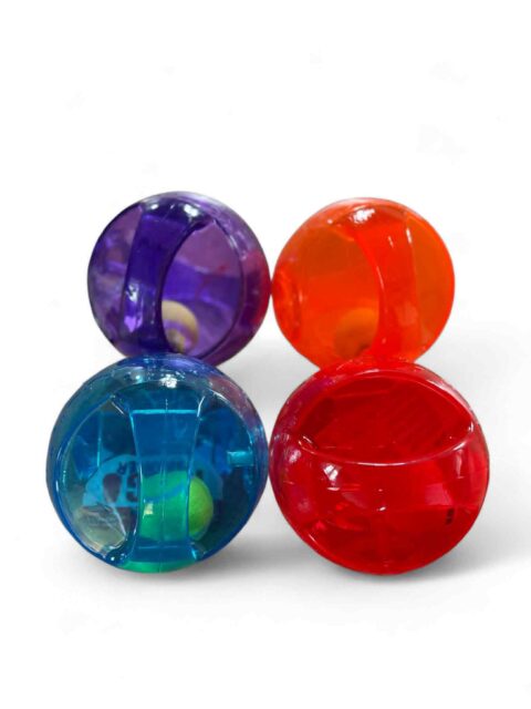 • Gennemsigtig bold i assorterede farver: lilla, blå, rød eller orange.