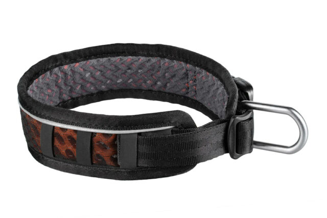 Halsbåndet er fremstillet i vores trelags-materiale HexiVent, der sikrer optimal ventilation og fremragende luftgennemstrømning. Det gør halsbåndet perfekt til aktiviteter som canicross, bikejoring og skijoring, samt til varme sommerdage eller svømmeture, hvor hurtig tørring er en fordel.