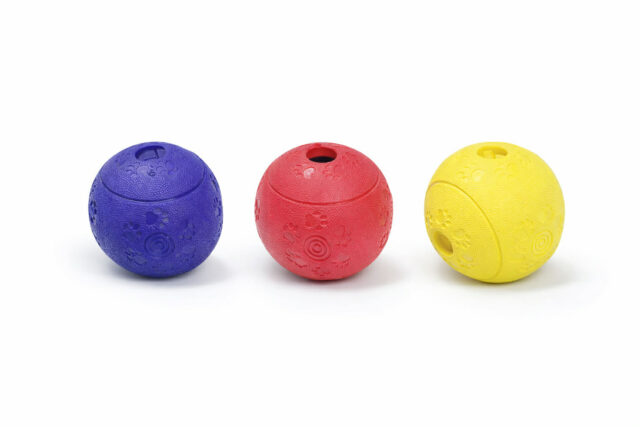 Ruffus Treatball er en sjov og udfordrende snackdispenser, der holder din hund beskæftiget i længere tid. Bolden har en mild vaniljesmag og kan fyldes med godbidder, som frigives gradvist under leg.